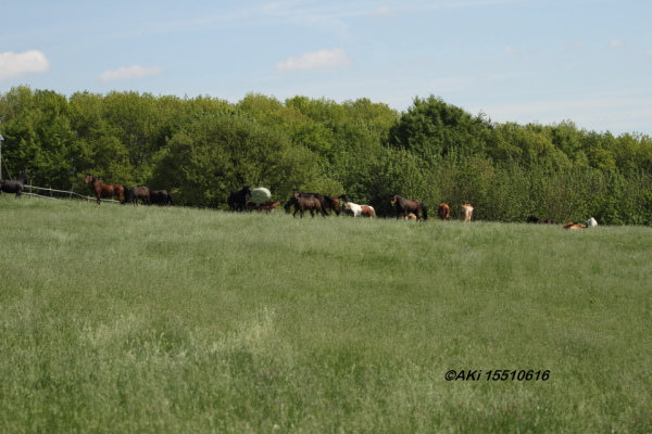 Dieses Jahr gingen alle wieder zum Anweiden zusammen auf die Sommerwiese. Erst stundenweise und dann später für den ganzen Tag zum Weidegang. Auch gab es wieder Bilder von denen die sich eilig aufs Gras stürzten am ersten Tag. Was dann auch erklärt warum die Pferde vor dem Weidegang noch schnell geputzt worden sind. Zumindest ein paar.