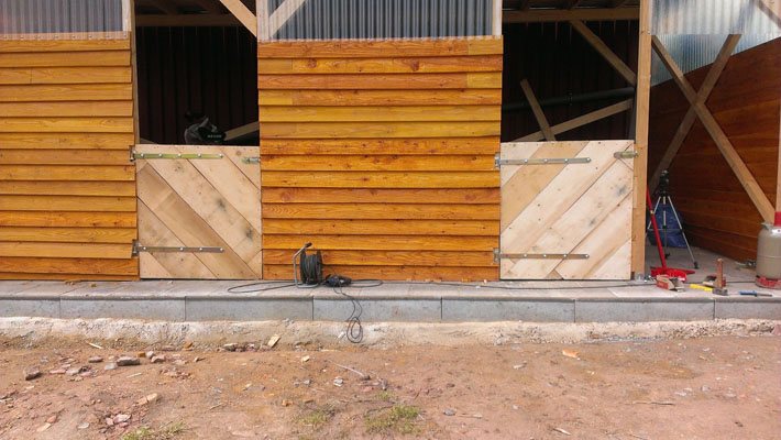 Nach dem dann Wasserrohre für die Tränken und Stromleitungen für die Beleuchtung verlegt waren und dem Rasen vor den Boxen eine Chance gegeben worden ist wenigstens ein bisschen grün zu werden bevor er wieder vernichtet wird, durften die Kleinen einziehen.