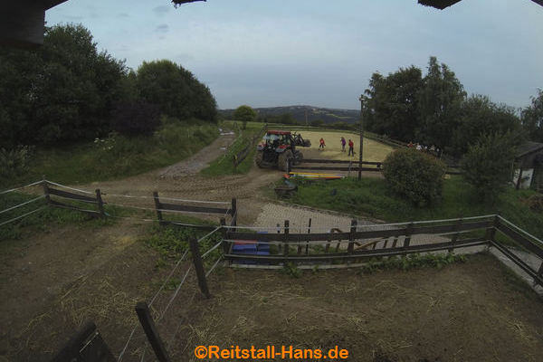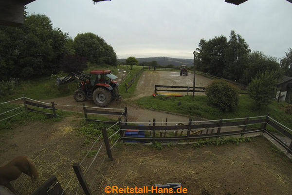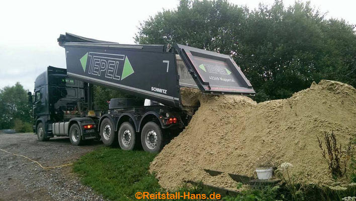 Auf den doch ein bisschen sandarm gewordenen Reitplatz sind ein paaaaaar Tonnen Sand aufgebracht worden.