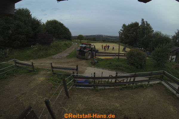 Über zwei Tage verteilt sind fünf Sattelschlepper mit je über 27 Tonnen Kirchhellenersand eingetroffen, die nun auf dem Platz verteilt werden wollten.Mit vereinten Kräften und tatkräftige Hilfe der Stallgemeinschaft ist mit den 137t Sand der Platz nun erfolgreich um einige Centimeter aufgefüllt worden.Und nach dem die Arbeit getan war, fanden sich alle auf ein Grillwürstchen ein. Danke für die Hilfe an alle Beteiligten.Hoffe nicht so bald wieder. :-D